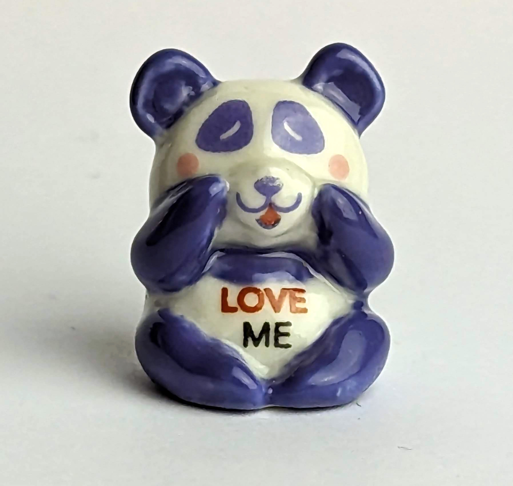 This charming ceramic figurine in the shape of a panda is a real eye-catcher in any collection. The little panda is lovingly painted by hand and shows itself in a purple-white color scheme. With a size of only 2 cm, the figure is particularly decorative and can be placed anywhere. Particularly noteworthy is the message the figure carries, "Love Me" on his belly. More clearly you can not say that you want to be loved.