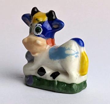 Acquire now this hand-painted ceramic figure of a sitting cow with blue ears, blue tail and light blue spots on the belly and bring a piece of nature into your home. You will not regret it!