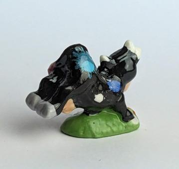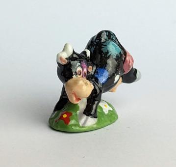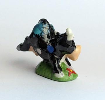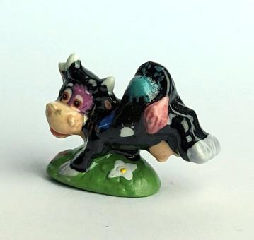 The artistic lovingly hand-painted ceramic figure of a bouncing, happy cow on a flower meadow is a beautiful and unique work of art for any cow lover. With a size of only 2 cm, this figure fits perfectly on any shelf or display case and is therefore also a great addition to any collection.