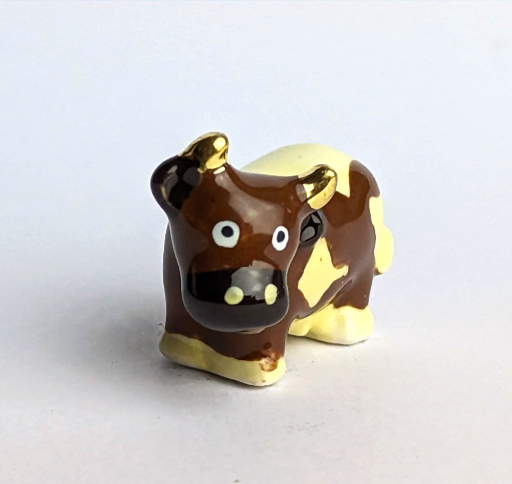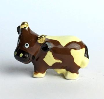 re you looking for something truly unique for your collection? Then our hand-painted, golden ceramic cow with her indecisive facial expression is just the thing for you! With a size of only 2 cm and in the colors brown and dark brown, it is the ultimate eye-catcher in any room.