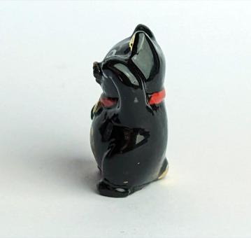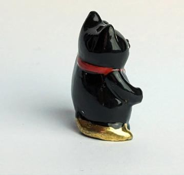 Chinese "waving cats" are known and loved worldwide for their special symbolism and meaning. This ceramic figurine in the shape of a waving black cat with red and gold decorations is a unique work of art. Each cat in this set has been lovingly hand-painted by skilled artists and features four different colors, making each figurine unique. With a size of only 2 cm, the figure is particularly decorative and can be placed anywhere.